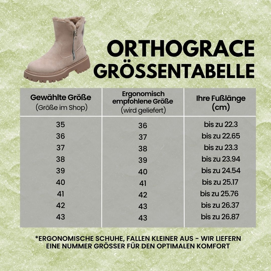 Wählen Sie Komfort, Fußgesundheit und ein echtes Trage-Komforterlebnis mit den OrthoGrace Stiefel. Sorgfältig entworfen, bieten sie viel Platz für natürliche Bewegung und Atmungsaktivität. Sie bieten Schutz und Unterstützung, während sie Ihre Fußgewölbe stärken und das Gleichgewicht fördern.