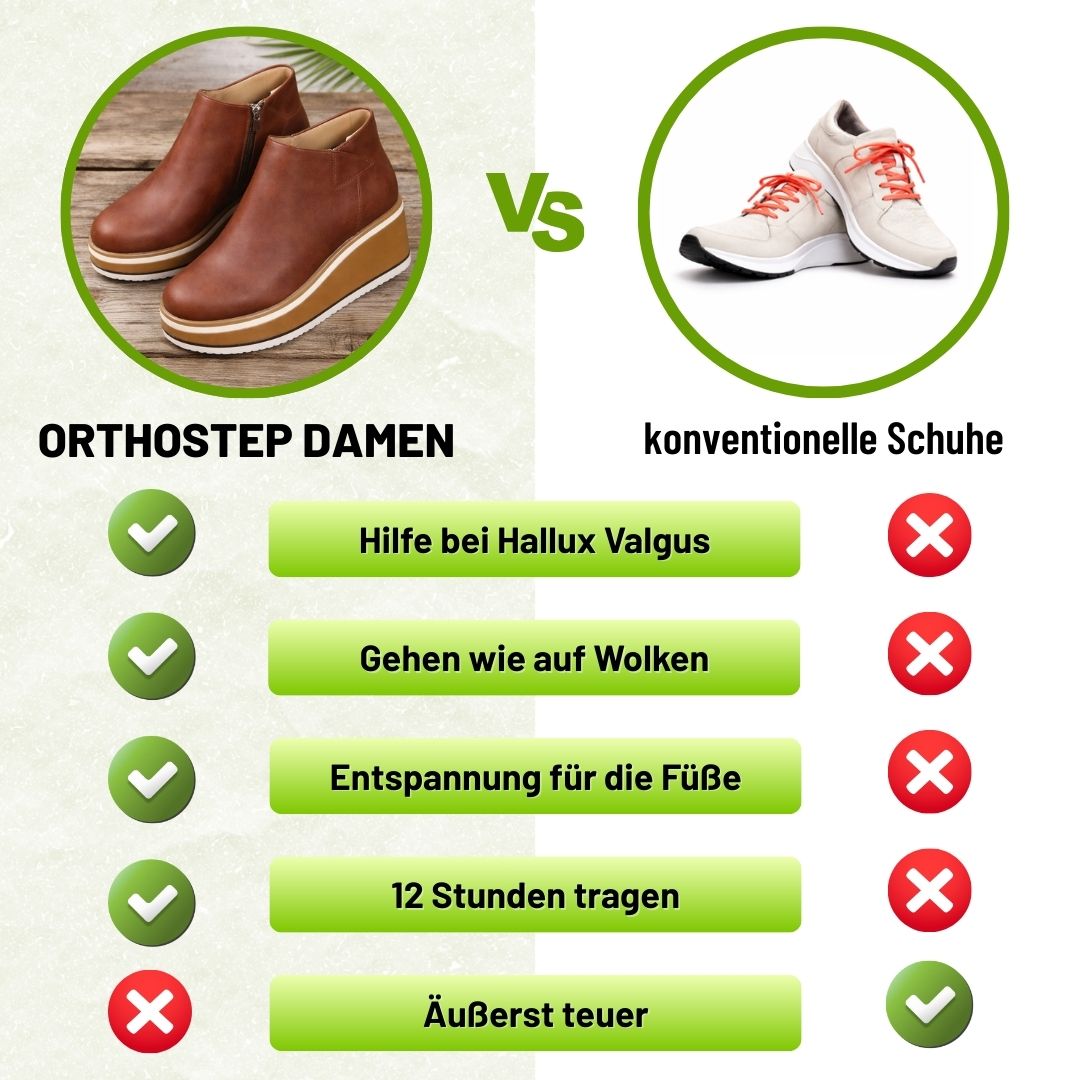 👉 Viele beschreiben das Gehgefühl als leicht, weich und entlastend – einmal getragen, möchte man OrthoStep nicht mehr ausziehen.